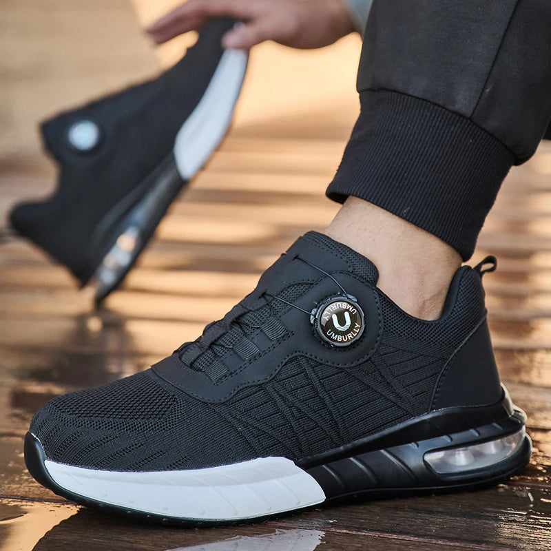 Unzerstörbare sicherheitsschuhe mit drehknopf, Stahlkappen sicherheitsschuhe mit luftblasen