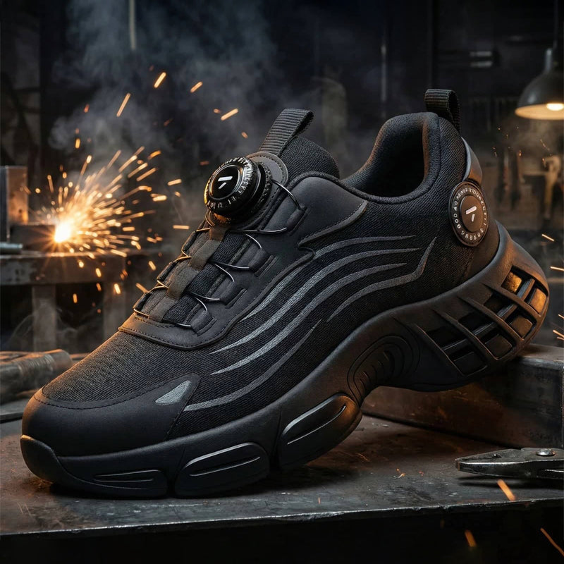Unzerstörbare sicherheitsschuhe mit drehknopf, Stahlkappen sicherheitsschuhe mit luftblasen